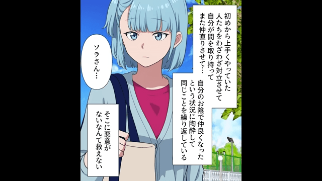 自分の罪を理解していない女性は「なんで…なんで私がこんな目に遭わなきゃいけないの…?」と絶望します。 そして主人公は、悪意なく同じことを繰り返す女性を救うことはできないだろうと思うのでした。