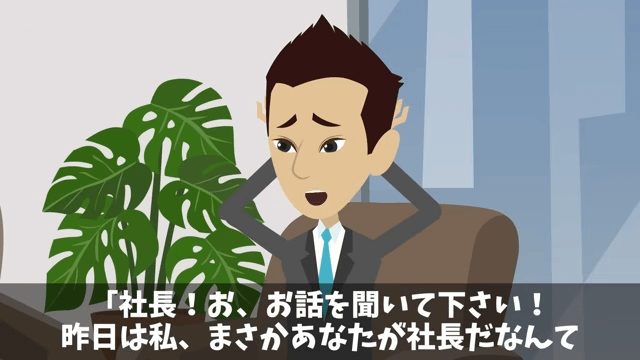 補修工事の費用の負担を求めるオーナーに、主人公は「やはりあなたを甘やかさないほうがいいみたいですね」と言いました。 するとオーナーは慌てて、主人公が社長だとは思わなかったと話し始めて…。