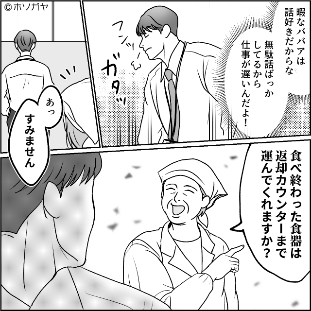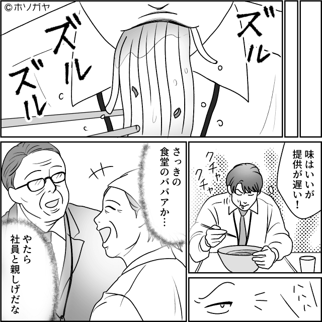 3ヶ月前、本社勤務となった男性社員は初めて社員食堂を利用しました。 うどんを注文した男性社員は、3分待たされただけで「なんでこんな遅ぇんだよ!?」と主人公に激怒。