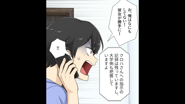 大学の職員は同級生に事件の資料を突きつけ、3ヶ月の停学処分を言い渡しました。 一方そのころ、弁護士は同級生の彼氏に「悪質と判断した場合は刑事告発の再検討も視野にいれています」と告げていて…。