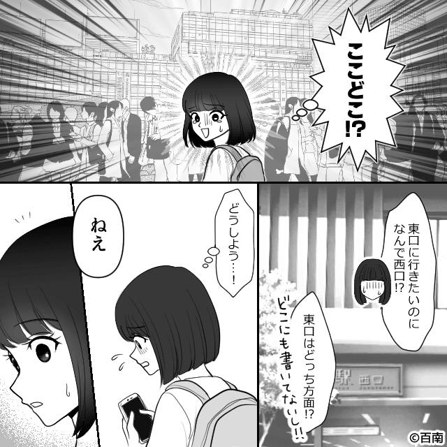 大都会で働くことになった初日、職場の最寄り駅で部長と待ち合わせをしていた主人公。 しかし都会が初めてだった主人公は、駅で迷子になってしまいます。