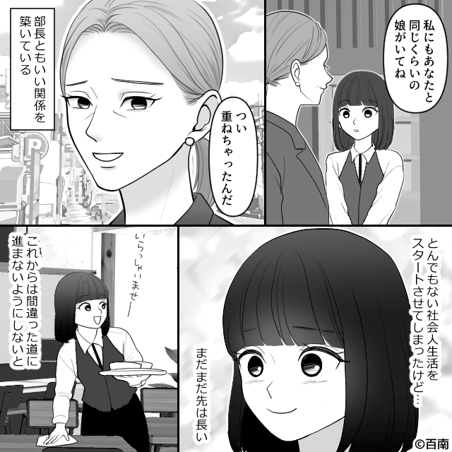 主人公は従業員たちと和解し、今後は間違った道に進まないようにしようと決意するのでした。