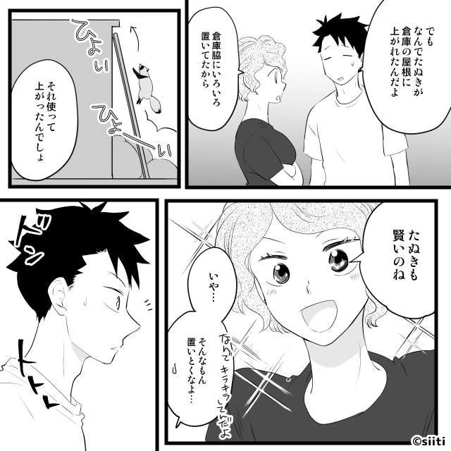 姉は「たぬきよ」と断言し、たぬきが屋根裏にいるのを見たと話しました。 ちょうどそのとき天井からドタドタと音が響き、姉は「たぬきが運動会してるわ」と楽しそうに話すのですが、主人公は唖然としてしまい…。