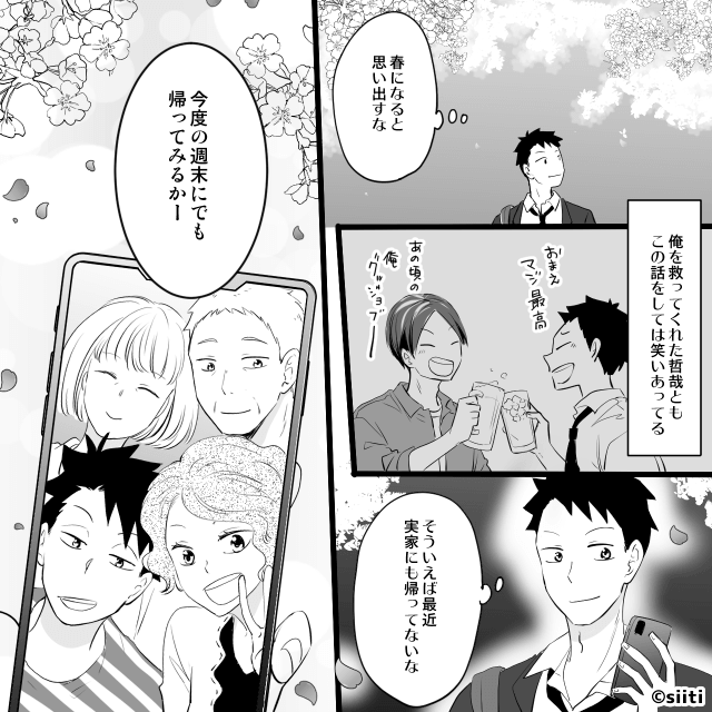 それから15年後、主人公はこの出来事を鉄板ネタとして語り、あのとき助けてくれた友人と笑い合うのでした。