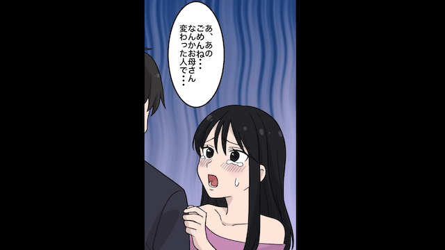 焦った娘は「ごめんね…なんかお母さん変わった人で…」と主人公を悪者扱いし、上司の息子に取り入ろうとしますが…。