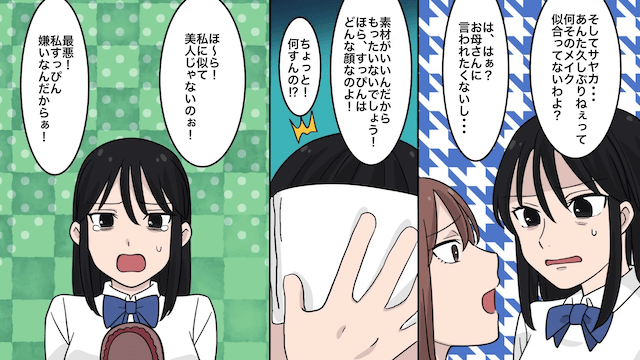 元妻は主人公に嫌がらせをしていた夫を責め、娘には「メイク似合ってないわよ?」と声をかけて…。