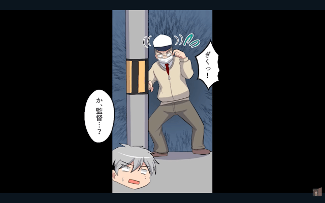 同級生が「楽しいなら続ければいいじゃん!」と笑顔で言ってくれたため、主人公は自分も野球が好きな気持ちに正直でありたいと思うようになりました。 そんなとき、主人公は何やら怪しい格好でこそこそしている監督のことを発見して…。