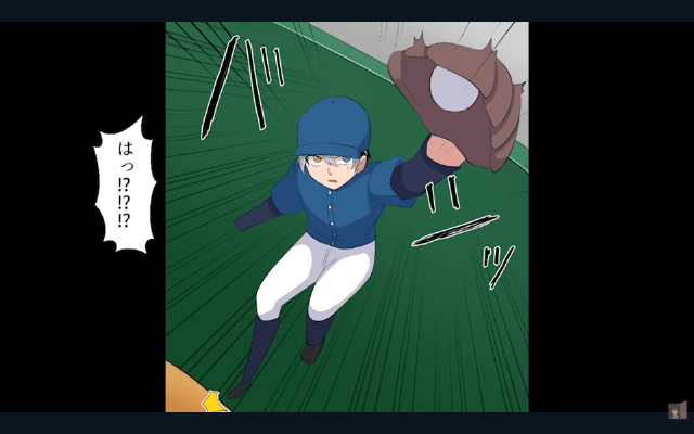 しかし主人公は自分の方に飛んできた球を難なくキャッチして…。