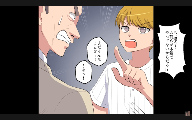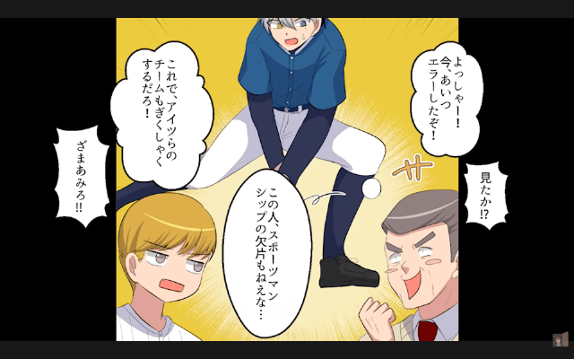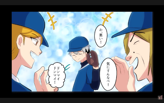 部員は主人公の努力について語り、監督に「俺たちが地区予選を逃したのは、監督のせいです」と言いました。 するとそのとき、主人公がエラーをしたため、監督は大喜びしましたが、仲間たちは主人公に「ドンマイドンマイ!」と笑顔で声をかけていて…。