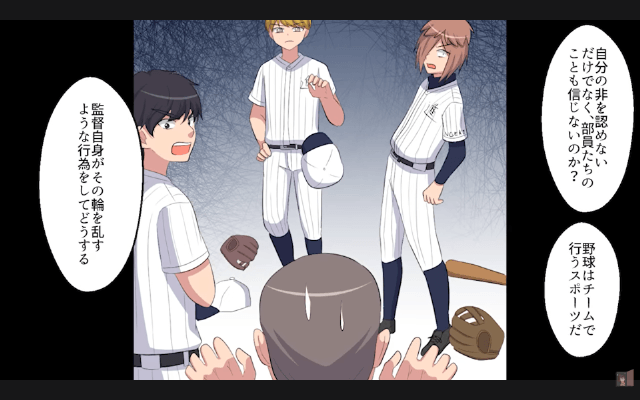 今回は『野球部の新監督「義手の選手なんていらない」⇒お望み通り【大会直前】に退部した結果』を紹介します。 主人公たち草野球チームが勝利すると、監督は「お前らのせいだ!」「今日、エラーした部員は退部させるからな!?」と部員たちを怒鳴りつけました。 するとそのとき、ある人物が監督に「…いいや、追放されるのは君の方だ」と言って…。