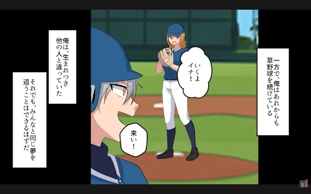 主人公の義手を壊した件で警察の世話になり、野球部から追放されただけでなく、二度と野球に関われなくなった監督。 一方、主人公は好きの気持ちがある限り野球を続けていこうと思い、草野球チームで仲間たちと楽しい日々をすごすのでした。