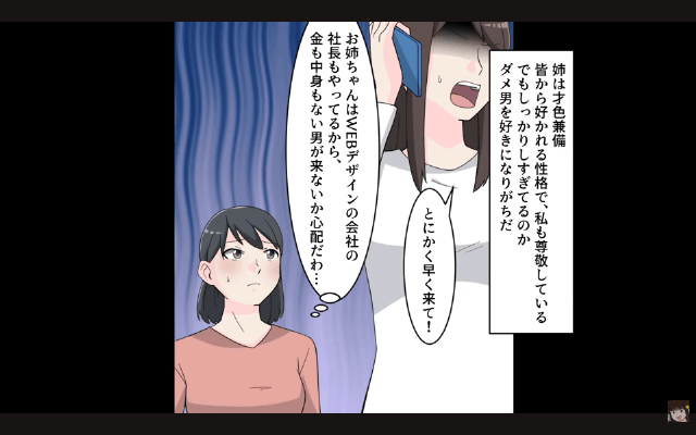 今回は『姉の婚約者がクズだった話』を紹介します。 主人公の姉は社長を務めるほどしっかりした人物でしたが、昔からだらしない男性を好きになりがちでした。 そして主人公と夫が姉の婚約者と顔を合わせる日、姉の婚約者は遅刻をした上に、あまり場に適さない服装でやってきて…。