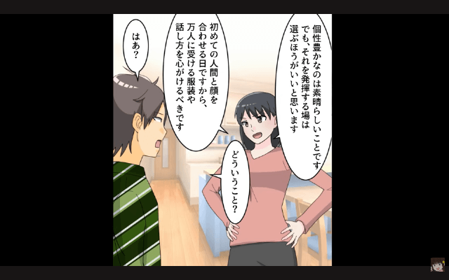 主人公は姉の婚約者に「初めての人間と顔を合わせる日ですから、万人に受ける服装や話し方を心がけるべきです」と言いました。 しかし姉の婚約者は「俺はさぁ、ありのままの自分を知ってほしいわけ」と言い、姉もそんな婚約者のことを叱りはしなかったのです。
