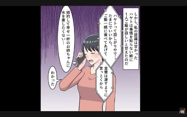 姉の婚約者が姉の長期出張中に主人公の家に入り浸るようになったため、主人公は少しは遠慮するよう注意をしました。 しかし姉はそんな主人公に「彼って寂しがりやで…たまにでいいから、ご飯一緒に食べてあげて…」と言ってきて…。