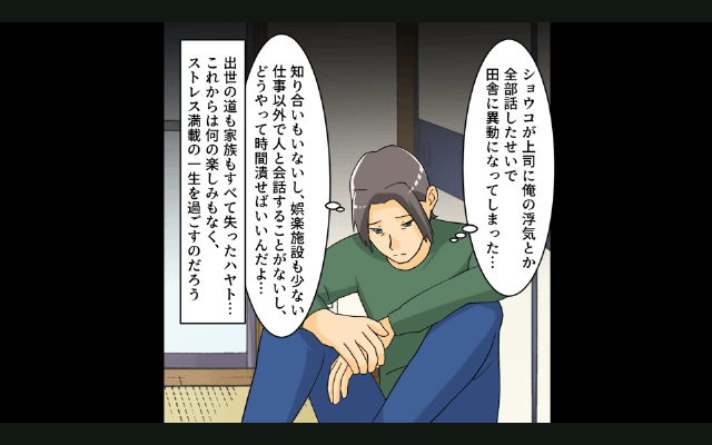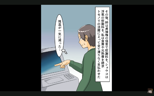 姉の婚約者は姉からも女性からも見捨てられ、姉と女性には慰謝料を、主人公には食費や生活費を支払うことに。 そして姉の婚約者は出世も家族も失い、これからは何の楽しみもなくストレスばかりの日々をすごすこととなったのでした。