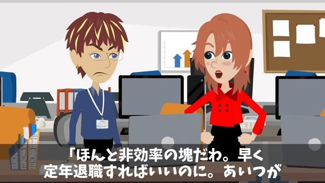 今回は『老人を見下したエリート社員の末路』を紹介します。 女性社員と男性社員は、定年後も働いている主人公のことをよく思っていませんでした。 そして男性社員は女性社員に、主人公について「何とか残りの数年、会社にしがみついて、最後まで会社から甘い汁を吸いとろうって魂胆なんじゃないですか」と話して…。