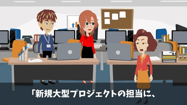 部長は男性社員と女性社員を新規大型プロジェクトの担当に任命したいと言いました。 それを聞いた男性社員は「ありがとうございます!」と頭を下げて…。