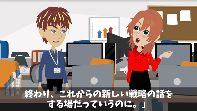 女性社員は主人公について「会議でも黙っててくれれば、いいんだけどね」と言いました。 すると男性社員も「ほんとそれ。いちいち発言されると時間の無駄なんですよね」と同意したのです。