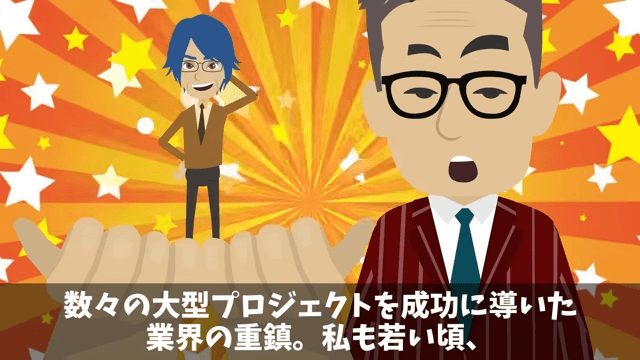 主人公が専務取締役だったことを知り、女性社員と男性社員は「え…?」「な、何…?」と驚きました。 そこで取引先の役員は、主人公が数々の大型プロジェクトを成功に導いた業界の重鎮であることを説明したのです。