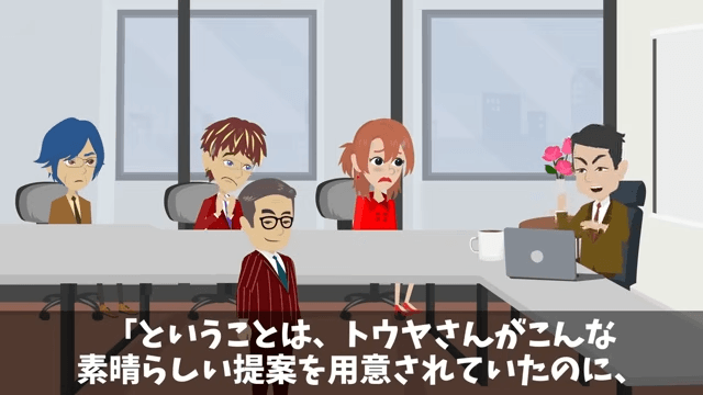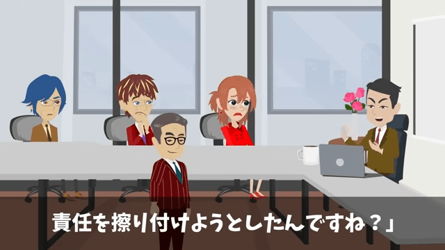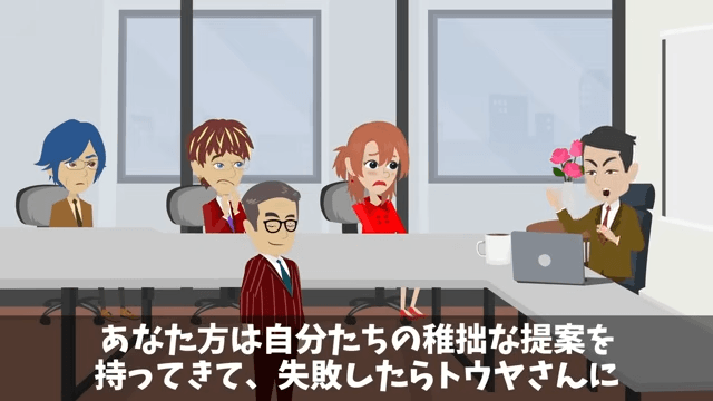 取引先の担当者は、最初に出した提案内容が主人公のものだと女性社員が言っていたことを指摘しました。 そして取引先の担当者は、女性社員と男性社員に「あなたがたは自分たちの稚拙な提案を持ってきて、失敗したら彼に責任を擦りつけようとしたんですね?」と言い…。