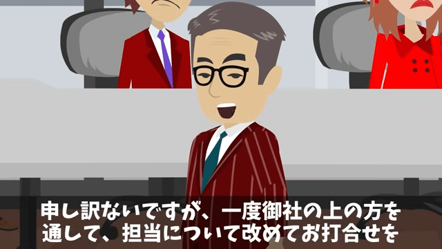 取引先の役員は、担当については改めて打ち合わせをしたいと言いました。 それに対し主人公は「かしこまりました。お手数をおかけして申し訳ございません」と謝って…。