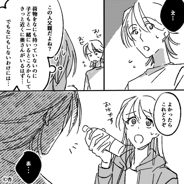 主人公は慌てて声をかけ、水を渡し…。
