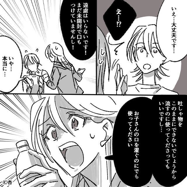 今回は『出産後に「激変」した親友の話』を紹介します。 ある日公園で、吐いている男の子とその姿を見てオドオドしている父親を見かけた主人公。 主人公は「大丈夫ですか?」と声をかけ、水を渡し…。
