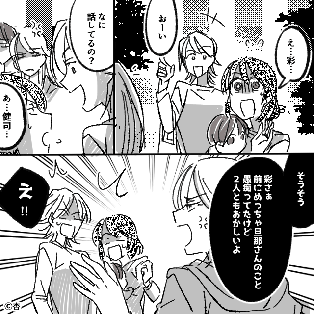 親友にイヤミを言われたため、主人公は本音を話して「もう連絡してこないで」と親友を突き放します。 さらにそこへ親友の夫が帰ってきたため、主人公は「2人ともおかしいよ」と告げたのでした。