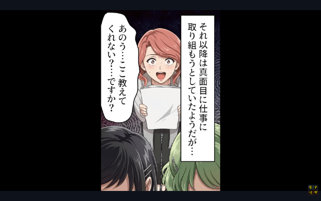 今回は『新人イビリをする上司の末路』を紹介します。 主人公が職場復帰した日、リーダーは上司に「この資料、あなたが作ったものじゃないよね?」と言いました。 そしてリーダーが資料の出来の悪さを指摘すると、社員たちが上司に注目したのです。 すると上司は思わず「それを作ったのは私じゃない!」「私は指示を出しただけで…!」と罪を自白してしまって…。