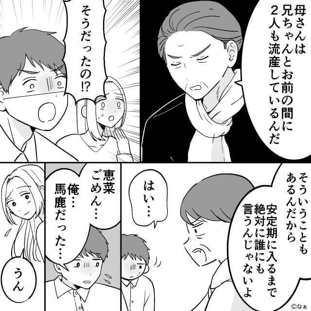 そして安定期に入るまでは人に言うべきではないと教えられた夫は、素直に反省したのでした。