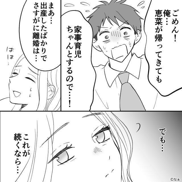 その発言に呆れた義父は「本気でこいつと離婚してもいいぞ」と主人公に告げてきて、夫は途端に焦り始めるのでした。