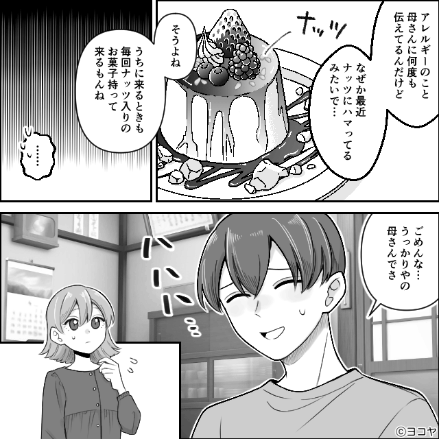 そして並んでいる料理を見ると、主人公の思った通りアレルギー食品ばかりが並んでいたのでした。