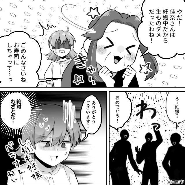 すると義母は「妊娠中だから生ものダメだったわね」とわざとらしく謝ったのでした。