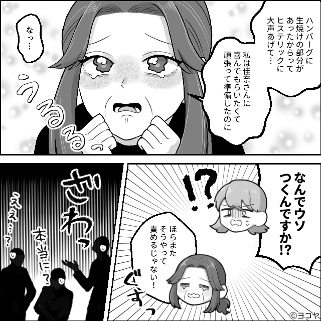 親戚から話を聞いた主人公は、義母を責めました。 すると義母は泣き真似をしながら「私が少しうっかりしただけですぐ怒鳴りつけて…」と嘘をつきます。