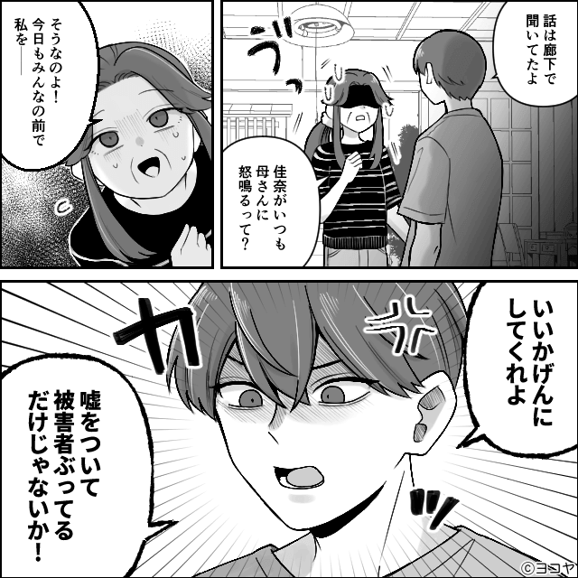 今回は『“うっかり”が口癖の確信犯義母』を紹介します。 「私ずっと彼女に責められてたのよ」と夫に被害者アピールをする義母。 すると夫は、怒って黙り込み…。