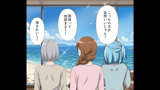 今回は『女子会旅行なのに…友人「家族も連れてきた♪」私たち「は?」』を紹介します。 友人に計画を台なしにされたため、他のリゾートホテルに行くことにした主人公と親友たち。 ホテルに到着すると、スイートルームに案内されて…。