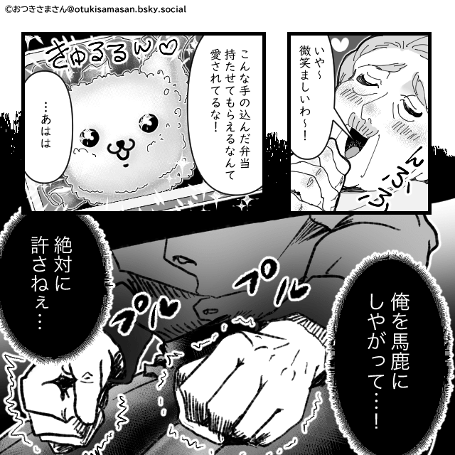 上司に弁当を褒められた夫は、いつものように会社で弁当を開けました。 すると中身はキャラ弁で、上司や後輩は笑いながら弁当を褒めます。