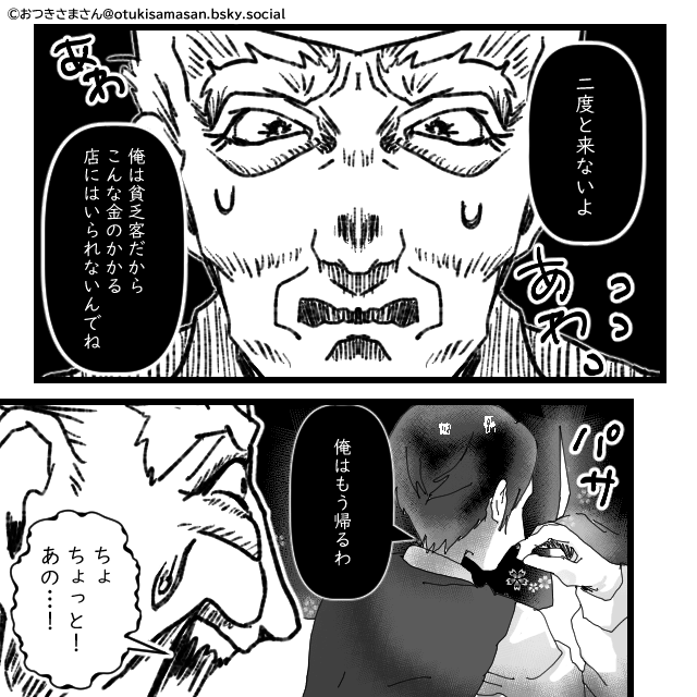 怒った常連客が帰ろうとすると、大将は青ざめるのでした。