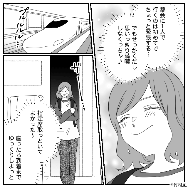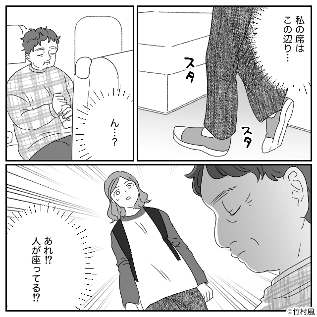 遠距離恋愛中の彼氏に会うため、初めて1人で都会に向かっていた主人公。 指定席のチケットを取って新幹線に乗り込むと、主人公の席に女性が座っていて…。