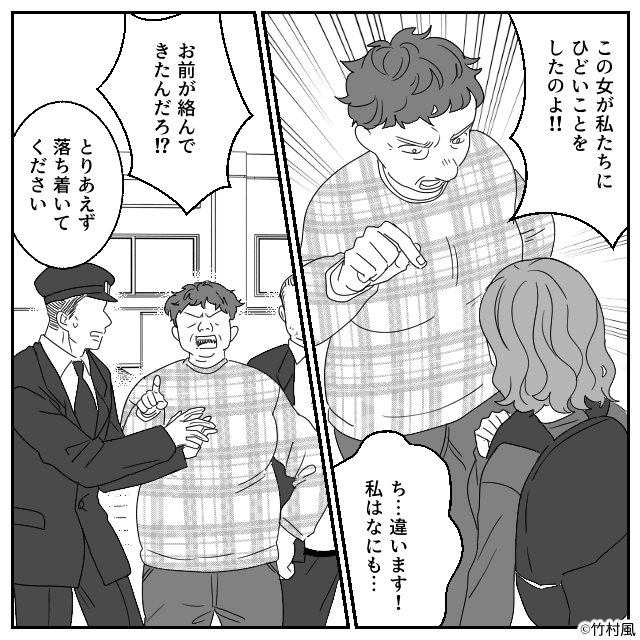 今回は『公共交通機関で遭遇した迷惑客の正体』を紹介します。 責任転嫁し、主人公を責めてくる男性と女性。 2人は騒ぎを聞きつけてやってきた駅員にも、主人公が悪いと説明し…。