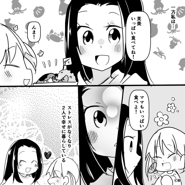 一方、主人公はストレスがなくなり、娘と2人で幸せに暮らしたのでした。
