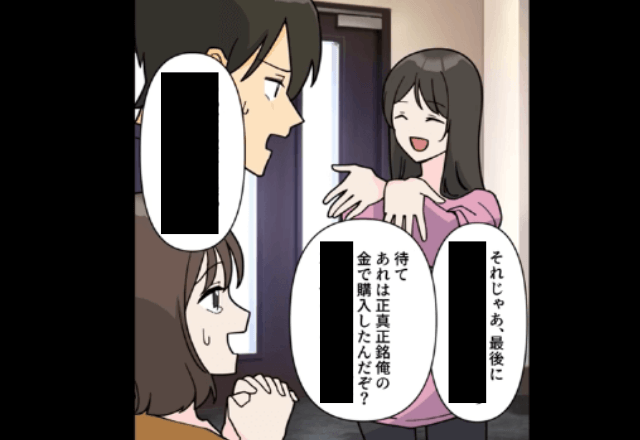 主人公は家の中の家具や家電がすべて独身時代に買ったものであることや、夫が大して稼いでいないことを浮気相手に明かしました。 さらに夫が義妹を侮辱すると、主人公は義妹が会社を立ち上げて年収2000万円を稼いでいることを明かしたのです。