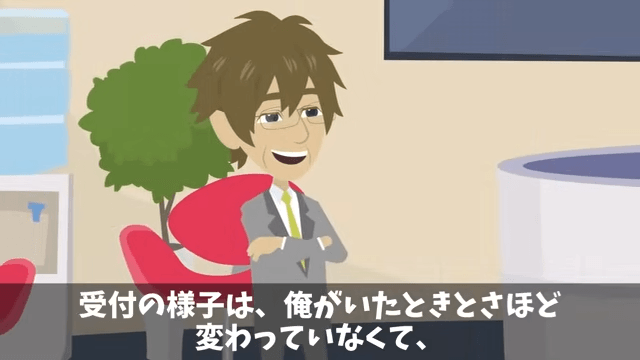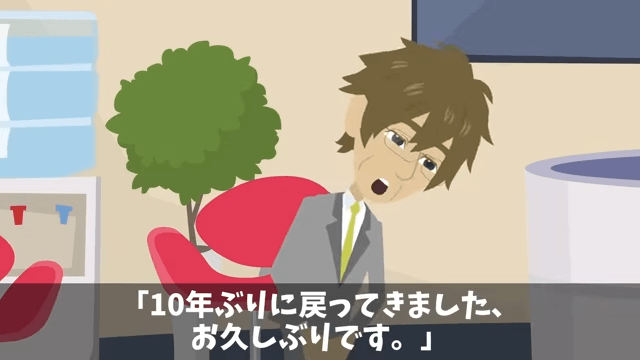 10年ぶりに本社のオフィスにやってきた主人公は、受付の様子がほとんど変わっていなくてほっとしました。 そして主人公は「10年ぶりに戻ってきました、お久しぶりです」と言い、受付の女性に頭を下げたのです。