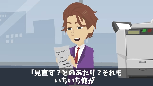 今回は『社長令嬢「おじさん新人は使えないから出ていけ(笑)」俺「いいのね?」速攻、退職願を出した結果』を紹介します。 男性社員は主人公が提出した資料を見て、新入社員以下だと文句を言いました。 そこで主人公が、具体的にどのあたりを見直せばいいのか男性社員に尋ねると…。