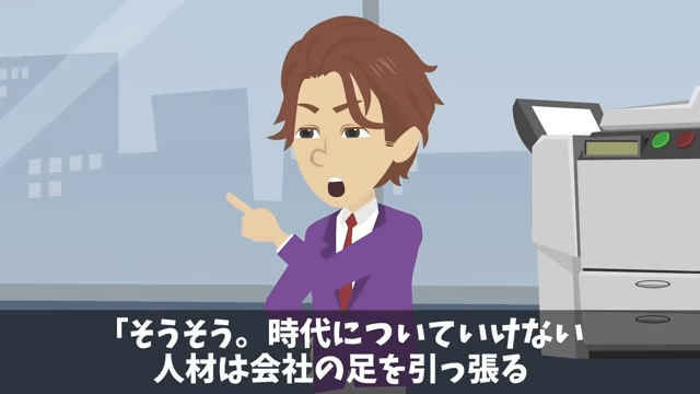 女性社員は主人公を雇うよりも新しい人材を雇ったほうがマシだと言います。 そして男性社員は「時代についていけない人材は会社の足を引っ張るお荷物なだけ」と言いました。