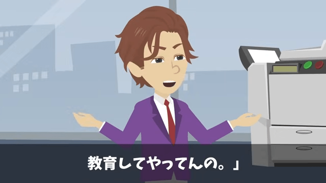 男性社員たちが主人公のことをバカにしたため、見かねた後輩が男性社員たちの話をさえぎりました。 すると男性社員は、主人公を教育しているだけだと言い出して…。
