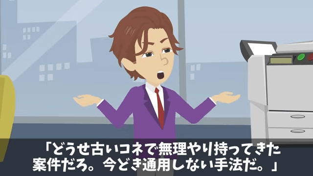 男性社員は主人公の発言を思い出しながら「どうせ古いコネで無理やり持ってきた案件だろ」と言いました。 その話を聞いた後輩は「まさか…あの会社の話をされていたんですか?」と驚いて…。
