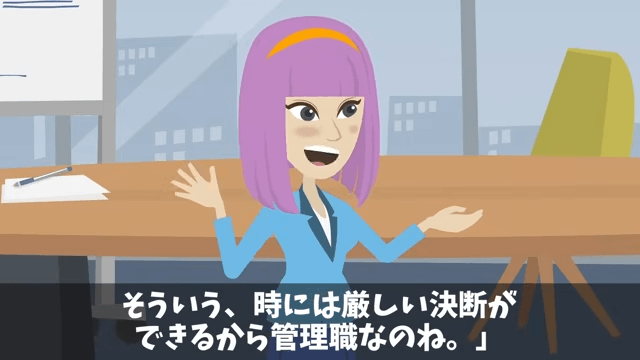 女性社員は周りの空気に気づかないまま、男性社員の判断力を褒めました。 そして女性社員は「そういう、ときには厳しい決断ができるから管理職なのね」と感心したのです。