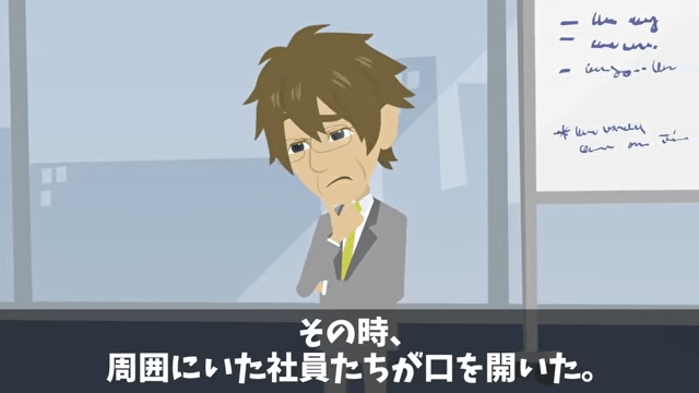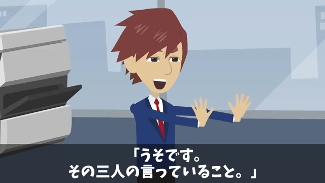 女性社員たちの話を聞いていた主人公は「この期に及んで全員でウソをついてまで…」と思いました。 するとそのとき、後輩が「ウソです。その3人の言っていること」と証言して…。