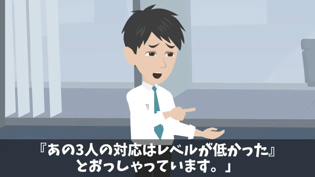 営業部の社員は、取引先の担当者が取引をやめたがっていることを社長に伝えました。 そして営業部の社員は、女性社員たちの対応はレベルが低かったとクレームが入っていることを報告したのです。